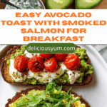 A fresh and flavorful Avocado Toast topped with silky smoked salmon, zesty lemon-herb crème fraîche, and a hint of capers, grilled to perfection on olive oil-brushed bread slices. This elegant yet simple recipe combines creamy textures and bright flavors, perfect for a nutritious breakfast or light lunch.