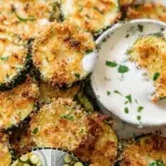 These Crispy Baked Zucchini Chips are a healthy, crunchy snack made by coating thin zucchini slices in a savory blend of panko breadcrumbs and parmesan cheese, then baking them to golden perfection. They offer a guilt-free alternative to traditional fried chips and are perfect for dipping in Greek yogurt ranch or your favorite sauce.