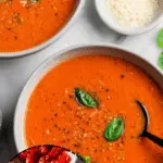 - If you prefer a chunkier soup, blend only half of the soup and mix with the rest.