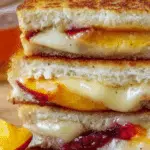 This Honey Peach White Cheddar Grilled Cheese Sandwich combines the sweetness of ripe peaches and honey with the creamy tang of ricotta and sharpness of white cheddar cheese, all melted between crispy golden sourdough bread. Optional additions like crispy bacon, fresh basil, and a drizzle of balsamic glaze add savory and aromatic layers, making it a perfect gourmet twist on a classic grilled cheese.