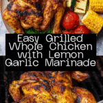 A mouthwatering recipe for a juicy grilled whole chicken marinated with a zesty mix of lemon, garlic, and aromatic herbs and spices. The chicken is spatchcocked for even cooking and grilled over indirect heat, resulting in tender, flavorful meat with a crisp, smoky skin.