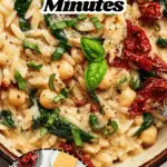 This comforting one-pot Marry Me Chickpeas and Orzo dish features tender chickpeas and orzo pasta simmered in a creamy garlic sauce with sun-dried tomatoes, fresh basil, and baby spinach. Ready in just 30 minutes, it’s an easy, flavorful meal perfect for a cozy weeknight dinner.