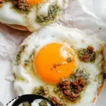 - Cook eggs: Crack the 4 eggs directly into the skillet with the warm pesto. Cook for 3 minutes over medium-high heat, then carefully flip each egg and cook for an additional minute for over-medium doneness, or adjust time to your preferred doneness.