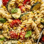 This vibrant Pesto Pasta Salad combines al dente fusilli pasta with roasted zucchini, yellow squash, cherry tomatoes, and sweet corn, all tossed in a flavorful pesto sauce and finished with grated parmesan cheese. Perfect for a refreshing side or a light meal, this dish offers a delightful mix of textures and summery flavors.
