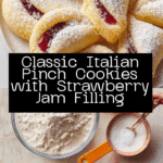 Pizzicati are delicate Italian pinch cookies bursting with a luscious strawberry jam center. These tender, buttery cookies are lightly dusted with powdered sugar and fashioned by pinching small rounds of dough around sweet jam, creating a charming rustic treat perfect for tea time or dessert.