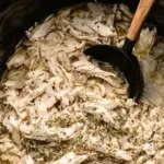 6. Shred: Once cooked, use two forks to shred the chicken directly in the slow cooker. This allows the shredded chicken to soak up the flavorful cooking juices.