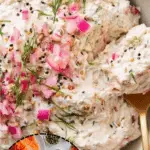 - Serve: Transfer the dip to a serving bowl. Top with several tablespoons of drained quick-pickled red onions and optionally sprinkle with everything bagel seasoning. Serve chilled or at cool room temperature with pita chips, toasted bread, bagel chips, or use as a bagel or sandwich spread.