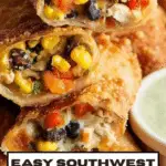 These Southwest Egg Rolls are a delicious and flavorful appetizer or snack packed with seasoned chicken, black beans, corn, spinach, peppers, and melted Monterey Jack cheese, all wrapped in crispy egg roll wrappers. You can enjoy them baked or fried to golden perfection, making a perfect versatile dish for any gathering or party.