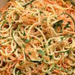 Since the dish is served cold and features raw-style vegetables, reheating isn’t necessary. Simply give it a gentle stir after refrigeration and optionally add fresh panko crumbs for added crunch before serving again.