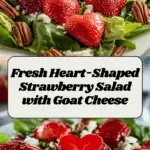 A refreshing and elegant Sweetheart Salad featuring heart-shaped strawberries, crunchy roasted pecans, creamy goat cheese, and a light Champagne vinaigrette, perfect for romantic occasions or a healthy, flavorful snack.