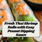 Delight in fresh and vibrant Thai Shrimp Rolls served with a creamy, tangy peanut sauce. These light spring rolls are packed with succulent grilled shrimp, crisp vegetables, and fresh herbs all wrapped in delicate rice paper, perfect as a healthy appetizer or light meal.