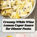 A creamy and tangy White Wine Lemon Caper Sauce that combines the brightness of lemon with the richness of heavy cream and sharpness of parmesan, enhanced by the briny pop of capers. Perfect to toss with pasta, drizzle over chicken, fish, or vegetables for an elegant and flavorful dish.
